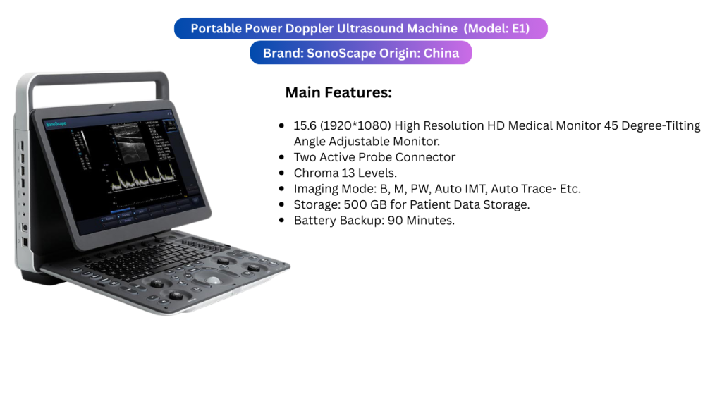 Portable Power Doppler Ultrasound Machine (Model- E1) Leave a Comment / Ultrasonogram (USG), Uncategorized / By Focus Imaging BD E1_USG_Brochure_SonoScapeDownload